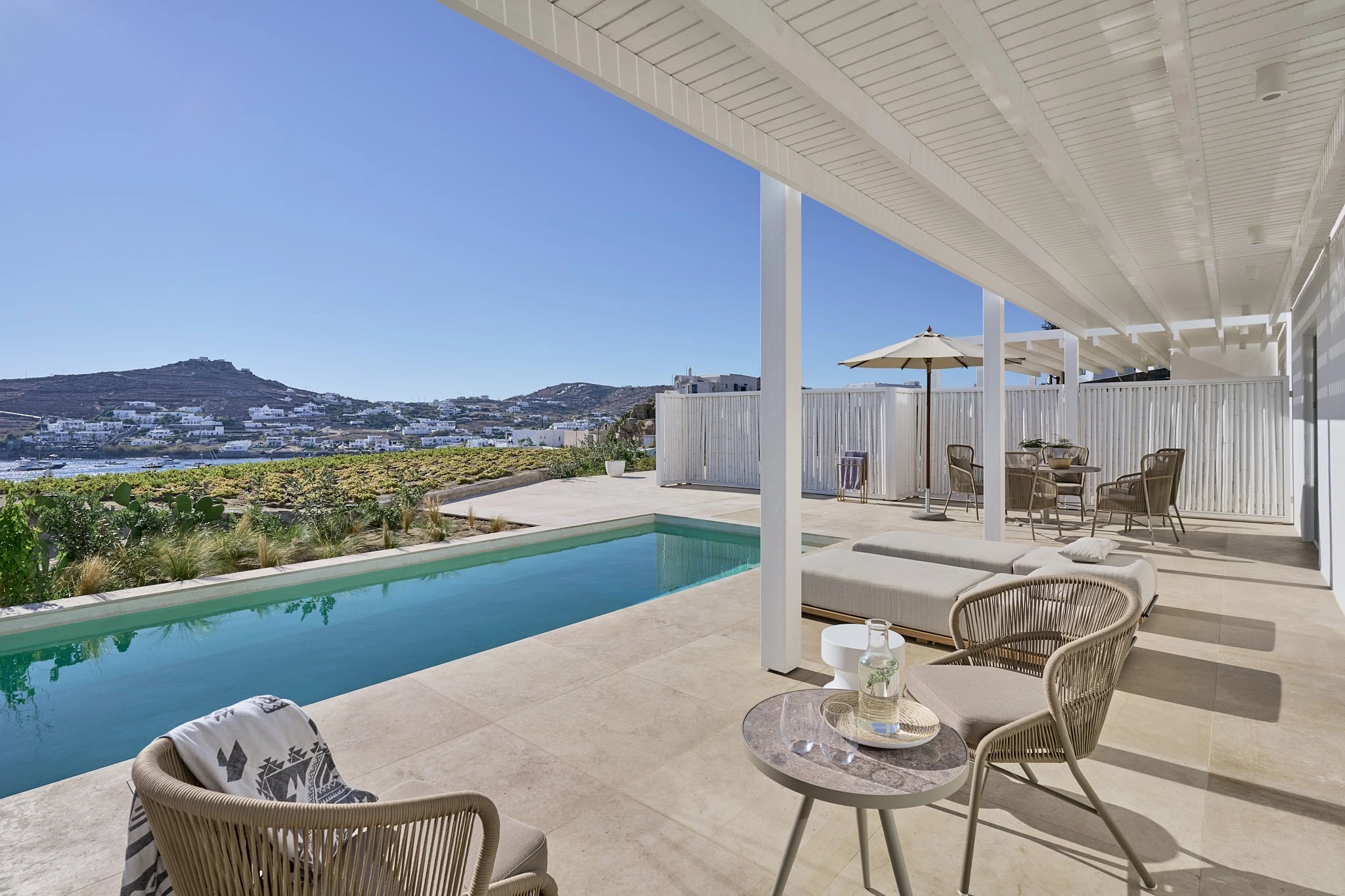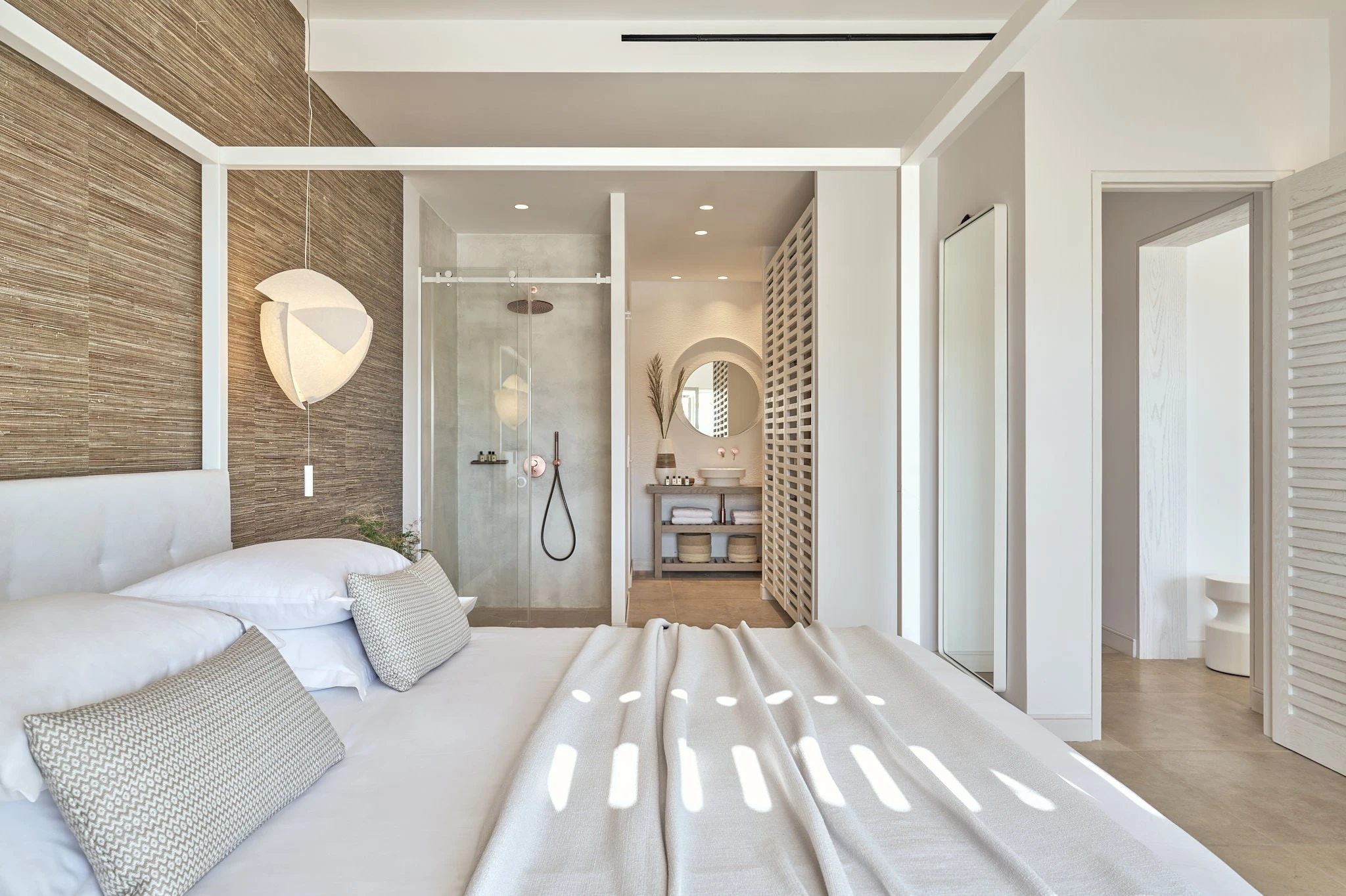 Make your stay beyond comfortable realizing just how striking Once in Mykonos’ hospitality can be. Indulge in a luxury suite of 83 sq.m. with two bedrooms and a fully equipped kitchen connected to the living room. A private pool of 21 sq.m. stretches across the veranda of 16 sq.m. with an impressive outdoor seating area offering sunbeds and chairs to lounge with sweeping sea views. Expect luxury living on an elevated scale with a King Size bed, a Queen size bed and a sofa bed, two bathrooms and a WC, a writing desk and three 49’’ TVs, a Nespresso machine, a tea-making tray, Frederic Malle amenities, and a minibar.