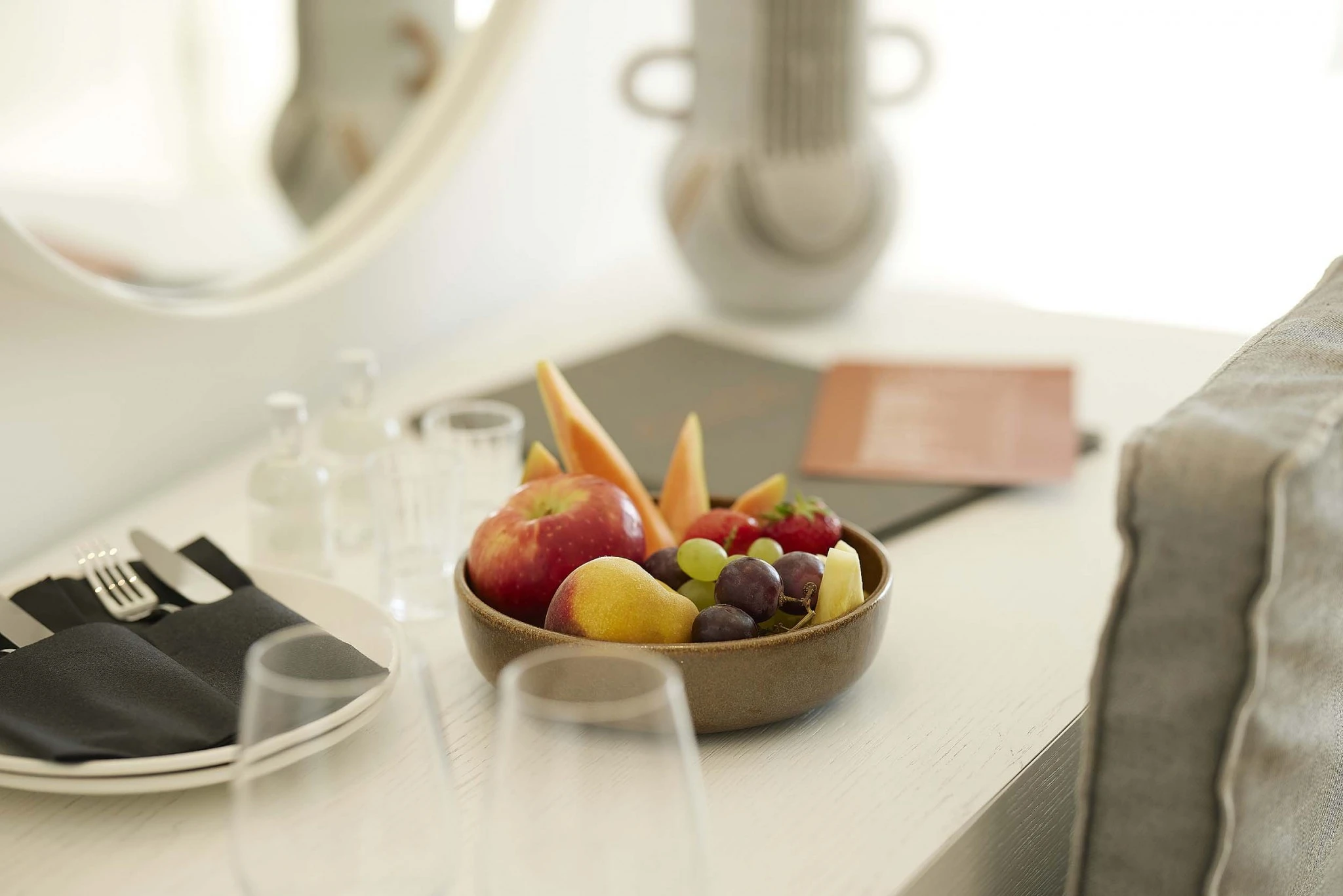 The Design Room Partial Sea View with Chill Out Pool includes all the comforts you need, such as a King Size bed, a spacious bathroom and Frederic Malle amenities, a coffee station, a safe deposit box, a writing desk, a 49’’ TV and a minibar, so as to make you feel at home!